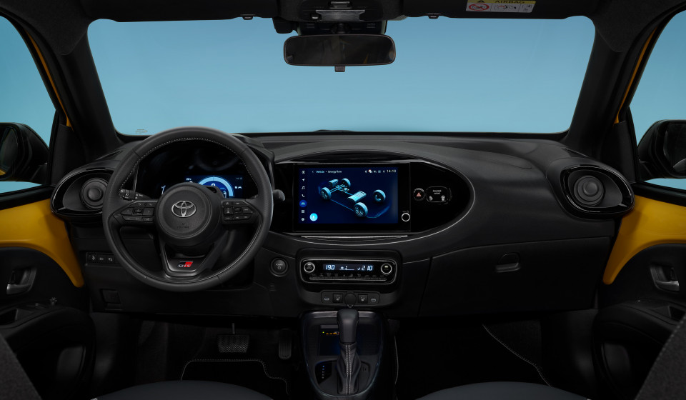Mit 116 PS, rasanter Beschleunigung und einem überraschend agilen Fahrgefühl zeigt der neue Aygo X, dass Nachhaltigkeit alles andere als langweilig ist. Der bewährte Toyota Hybridantrieb wurde perfekt in das kompakte Format integriert – ohne Einbussen beim Raumangebot. In der sportlichen GR SPORT Version unterstreichen exklusive Details und ein abgestimmtes Fahrwerk den dynamischen Charakter. Innen überzeugt der Aygo X mit hochwertigen Materialien, durchdachter Konnektivität und frischem Flair.